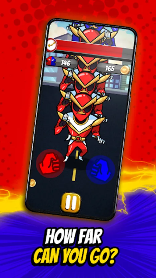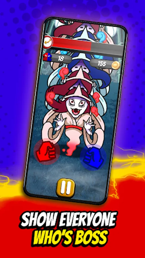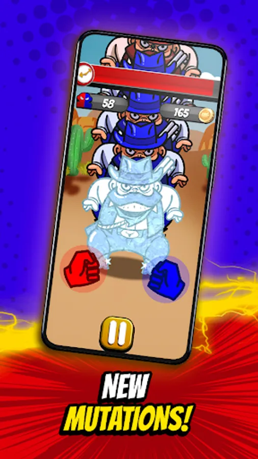 Choose between many foes from cowboys to japanese monsters, hit your opponent with the indicated color, if you tap the wrong color you will be knocked out. Try to see how many you can defeat without missing a single punch! 🥊 Do you have what it takes to beat your record in this infinite game?