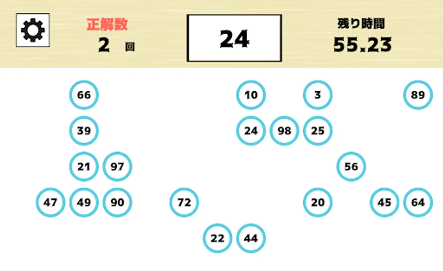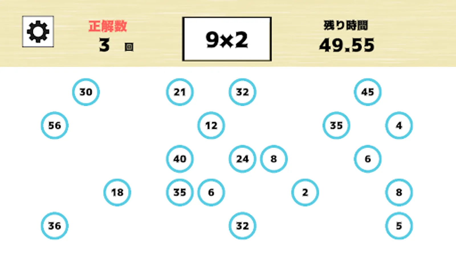 -A simple game where you simply search for the numbers embedded in a number of soap bubbles and press the numbers displayed large at the top of the screen.