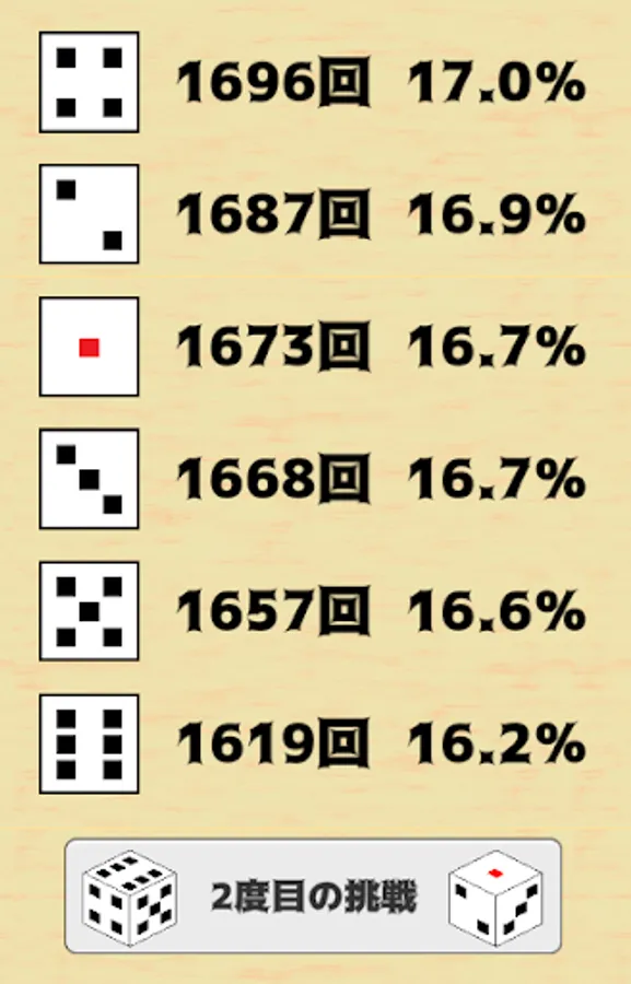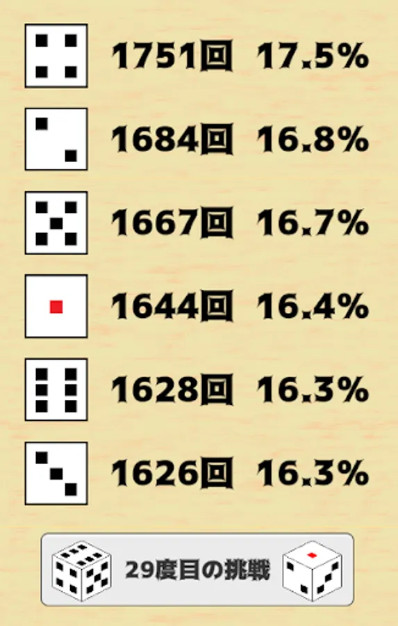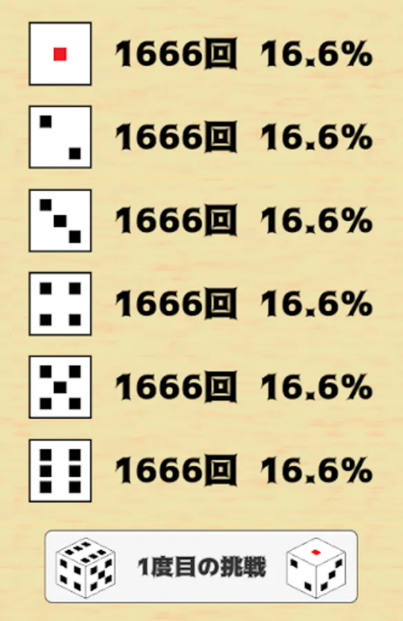 You can roll the dice with rolls 1 to 6 10,000 times in 0.1 seconds to display the result.