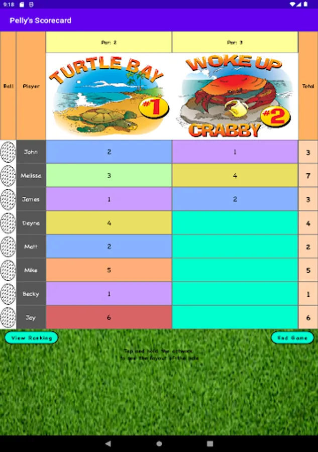 During your game of mini-golf game, this scorecard will allow you to enter the par value for each hole and view the current standings at any time.
