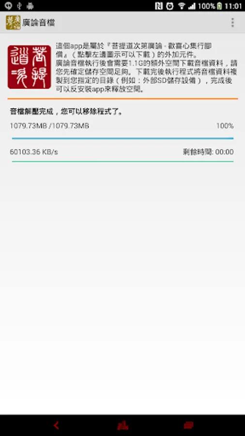 After extensive audio files on the need to perform additional space 1.1G download sound files, please you first determine adequate storage space.