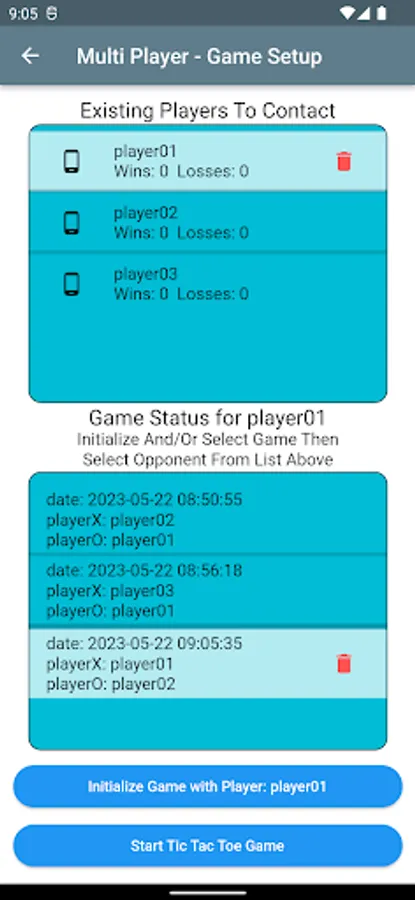 who has previously or currently signed in. The application will create a challenge request message which you can use to send to your opponent. You will initialize and start your game as the "X" player.