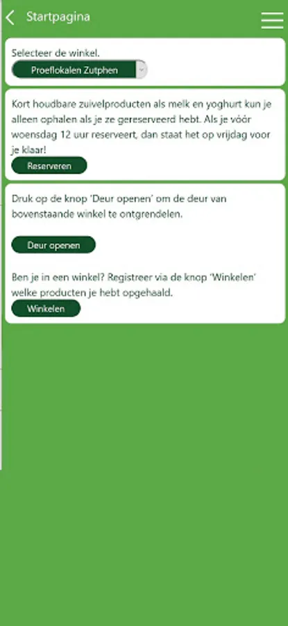 Verse zuivel, kaas, vlees, groente en fruit direct van de eigen boerderij! Met de app van Burgerboerderij de Patrijs krijg je toegang tot de afhaallocaties. Met de app kun je producten reserveren en aangeven wat je ophaalt tijdens het winkelen. Direct van de boerderij in de Vorden, met binnenkort afhaallocaties in Doetinchem, Lochem en Zutphen.