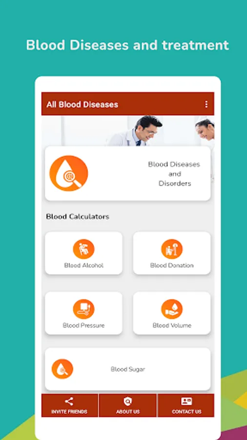 All blood disease and treatment A-Z app contains information on diseases affecting red blood cells, white blood cells, platelets and plasma. This app also contains blood pressure checker calculator, blood alcohol level test tracker, blood donation time tracker, blood volume calculator and blood sugar conversion calculator.