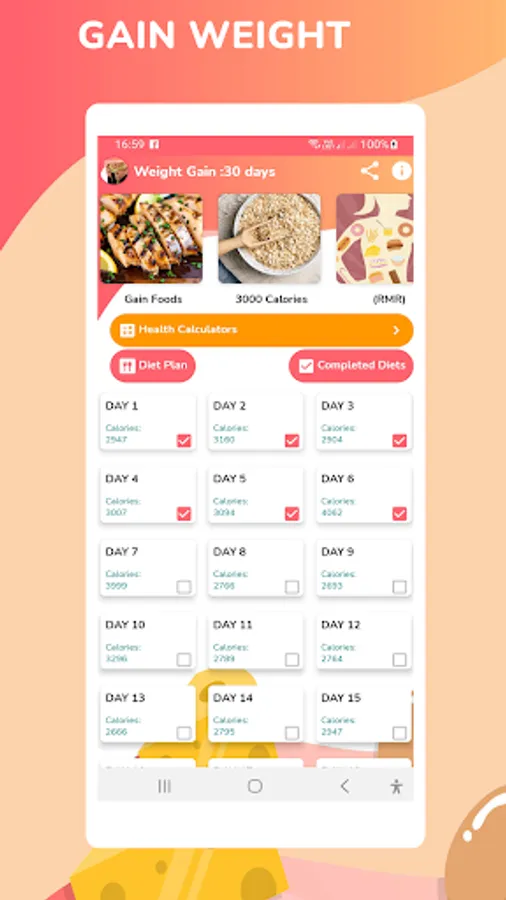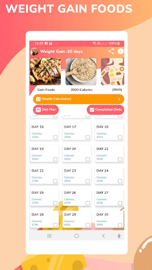In addition, protein, sugar and fat are needed. Weight and balanced can reach 10 pounds in a month. If you are considering yourself underweight this weight gain fast/ diet plan app will fix the skinny body.