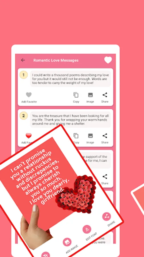 If you like someone or you are in a long-distance relationship and you cant write, this love app will help you express your love in the right words. Express love with meaningful messages.