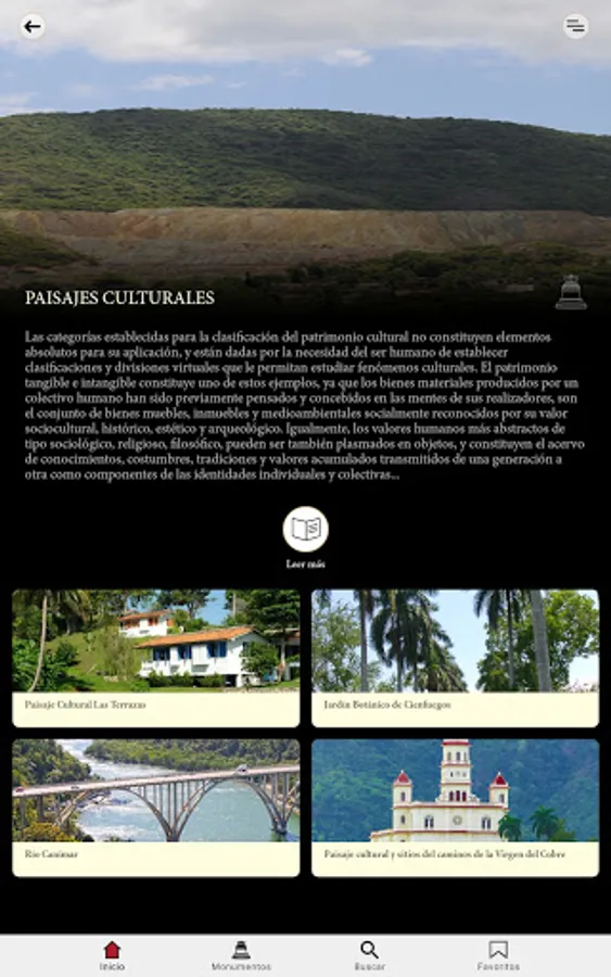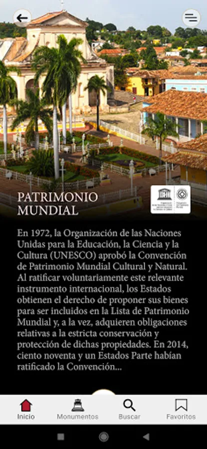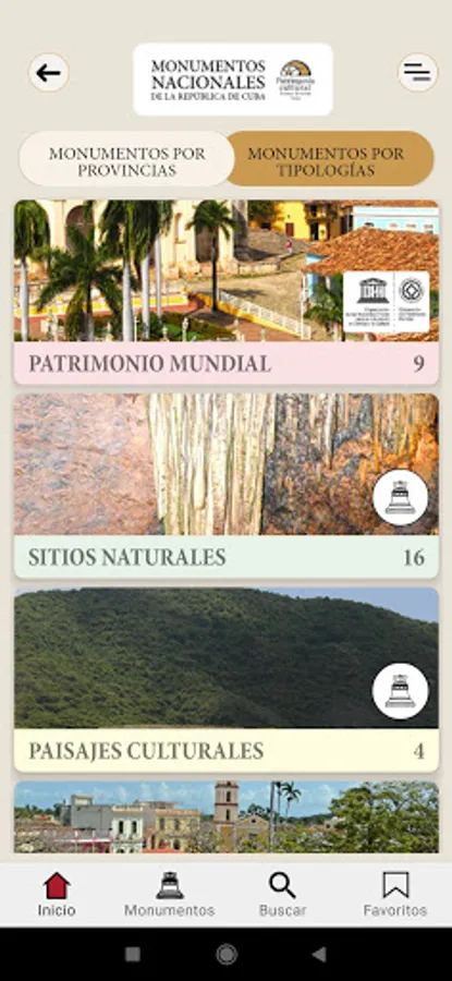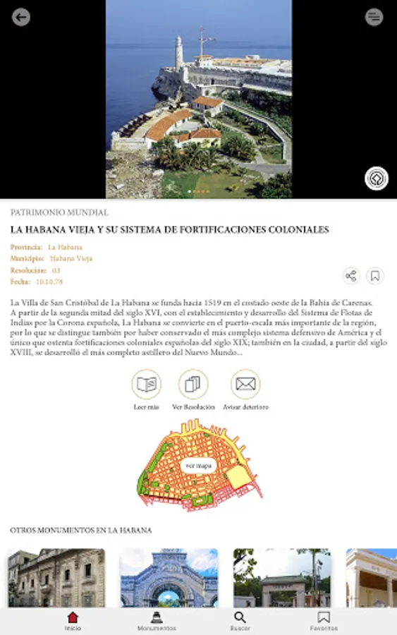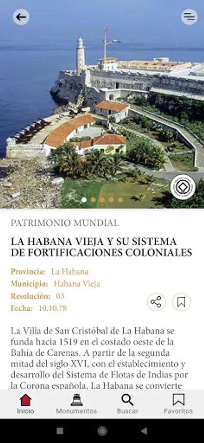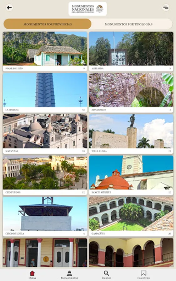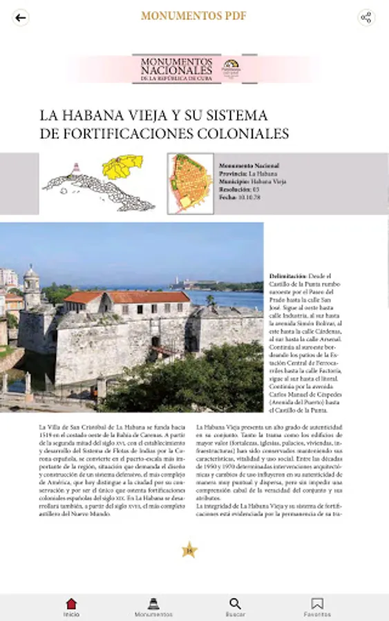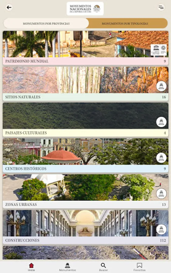 In a simple way, you can navigate through the National Monuments of Cuba, both territorially ordered, and by their typology. Cuban sites included on the World Heritage List are also grouped together for easy viewing; Through images an attempt is made to express the exceptional universal value of these heritage jewels.