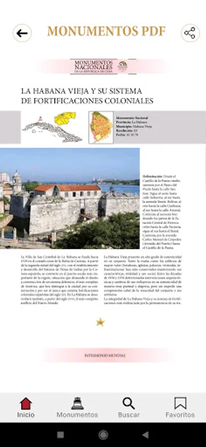 The purpose of this application is to provide succinct information about the objects, buildings, sites and historical centers that have been declared a National Monument and, consequently, are part of the Cultural Heritage of the Nation.