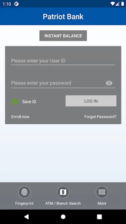 Online Banking customer ID and password. At this time, Patriot Bank Mobile Banking is not available