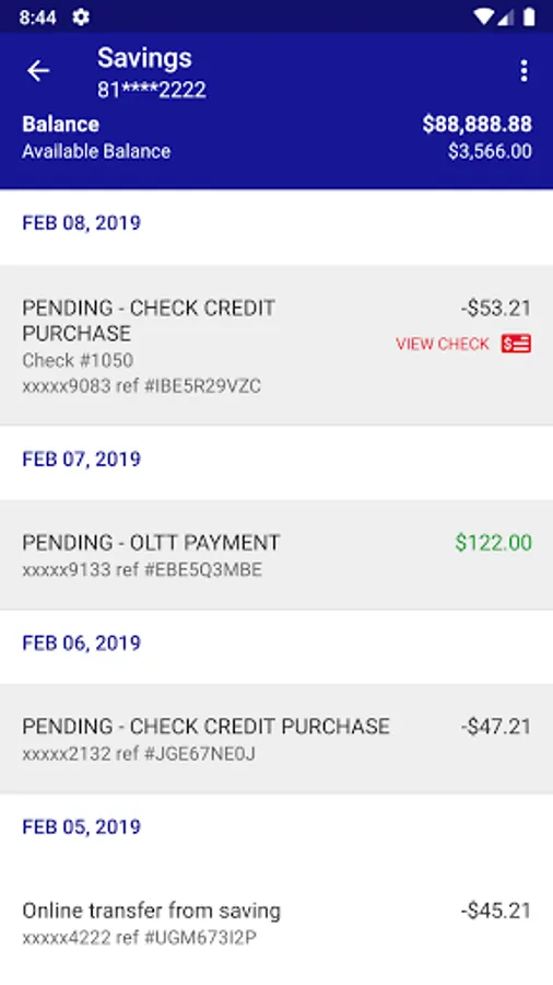 - Check your latest account balance and search recent transactions by date, amount or check number