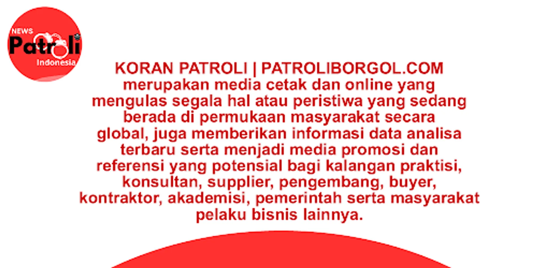 PATROL NEWSPAPER | PATROLIBORGOL.COM is a print and online media that reviews all things or events that are currently on the surface of society globally, also provides the latest analytical data information as well as being a promotional medium and potential reference for practitioners, consultants, suppliers, developers, buyers, contractors. , academia, government and other business communities.