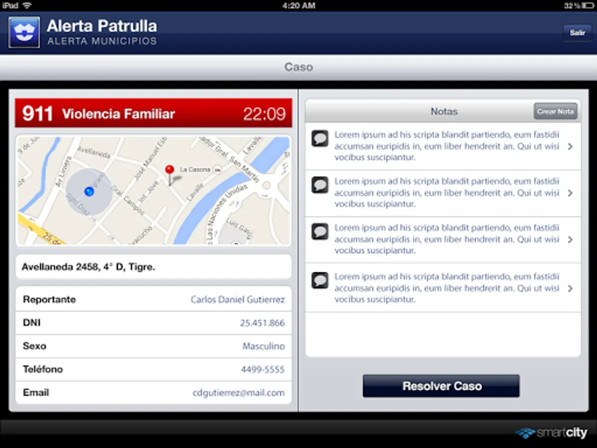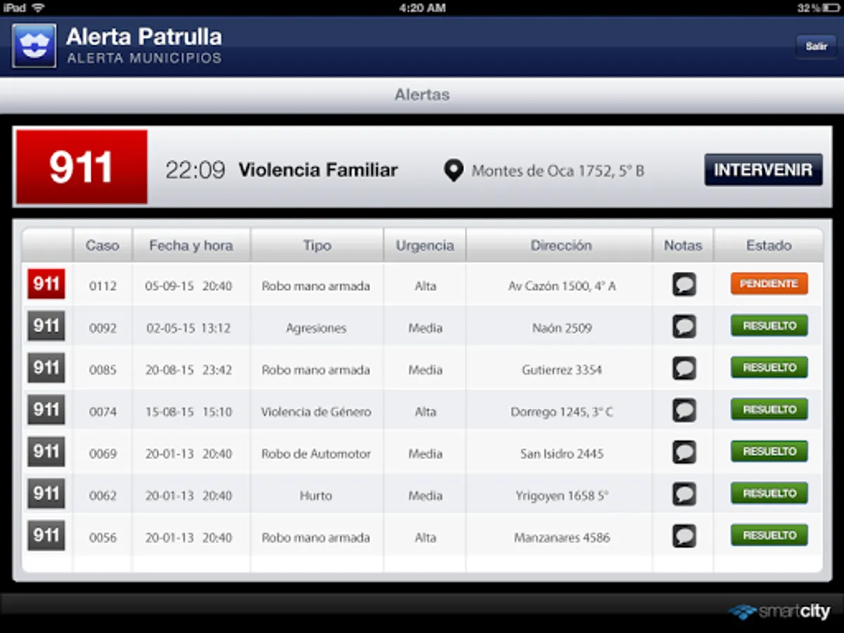 Patrol Alert is an application of Municipalities Alert developed by SmartCity, which allows mobile emergency units (patrols, ambulances, firefighters, civil defense) receive real-time cases dispatched by an operator from the Operations Center New Generation.