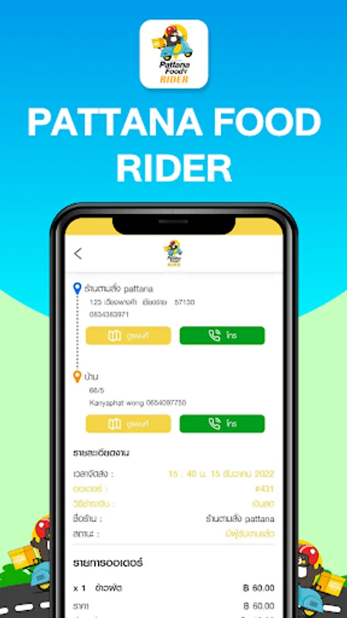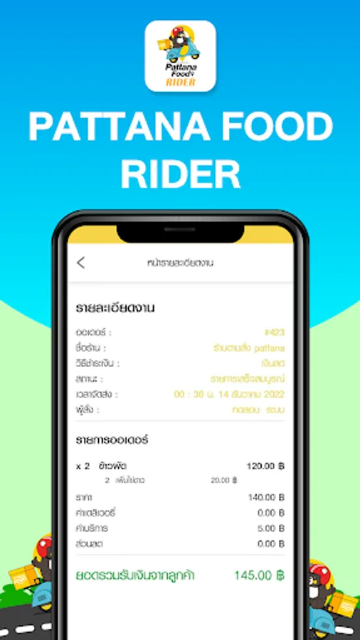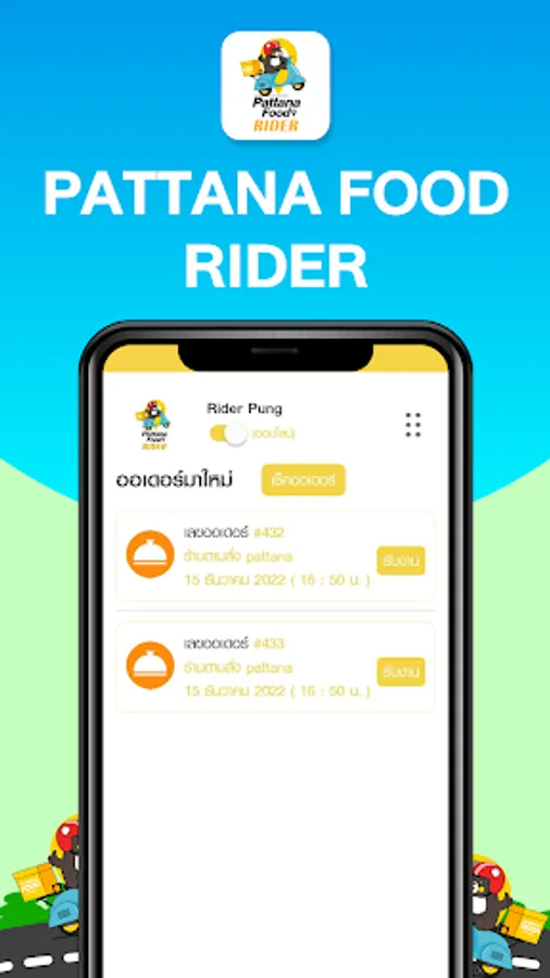 Pattana Food Rider is part of the food ordering service app. It meets all needs with a professional core service that will assist you whenever you need it.