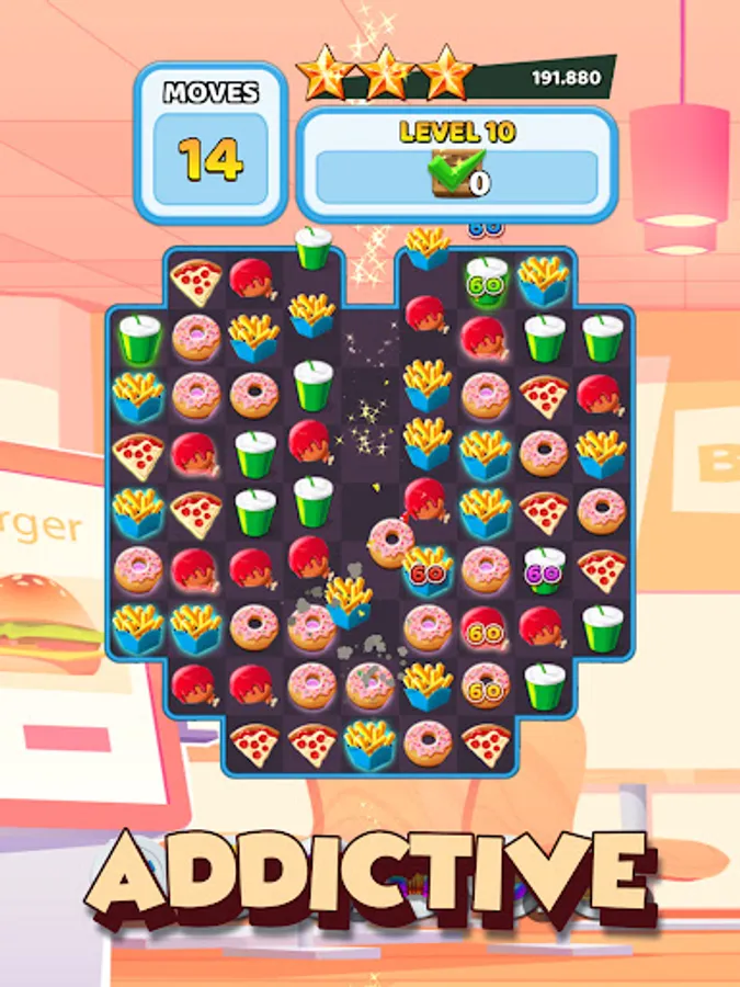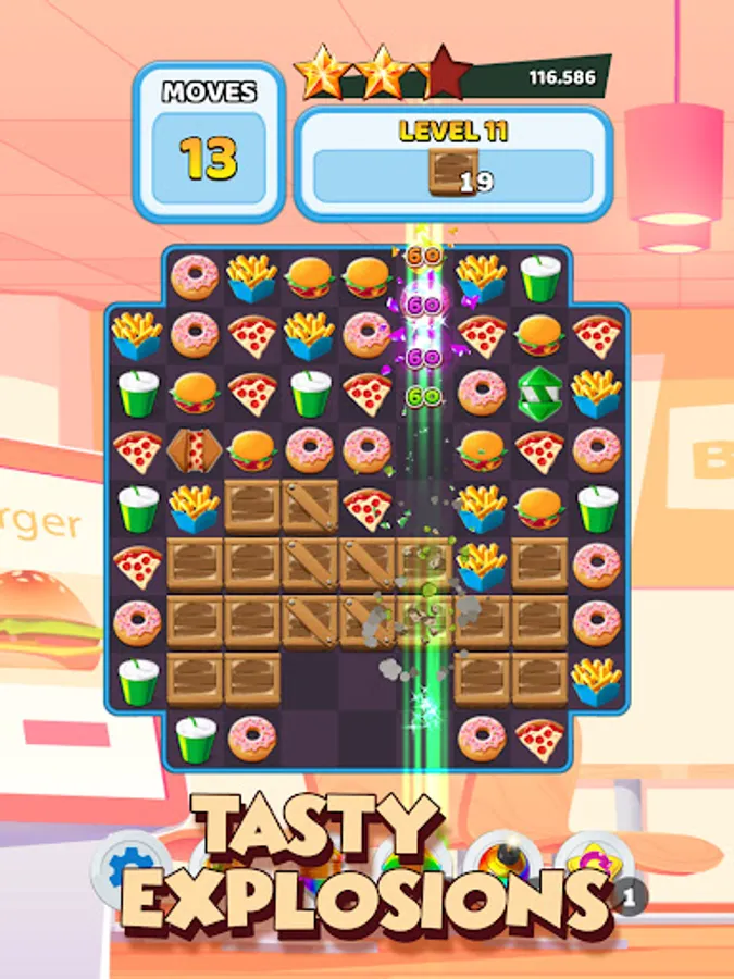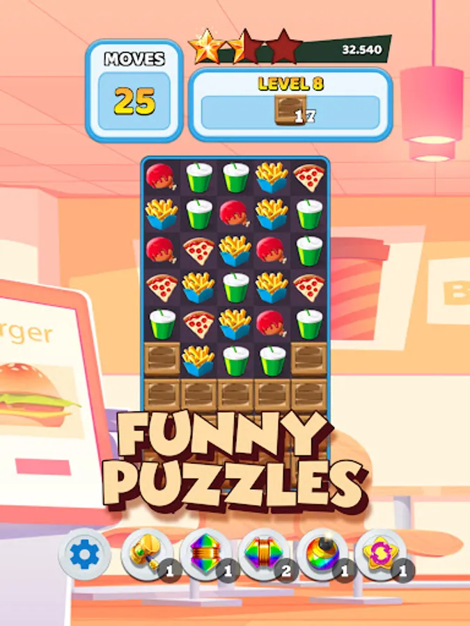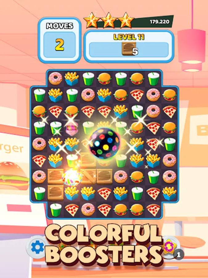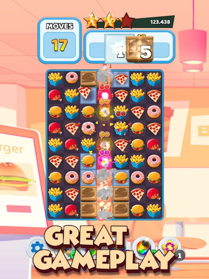Swap and match many cute burgers to gain points.
