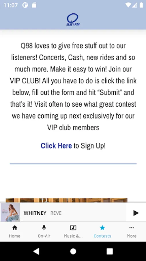 Nothing but the hottest Top 40 tracks 24/7 PLUS Q98 is the place to go to hear the absolute newest releases first! The most fun and the most music and now listen to us anywhere on earth with our FREE Q98 app!