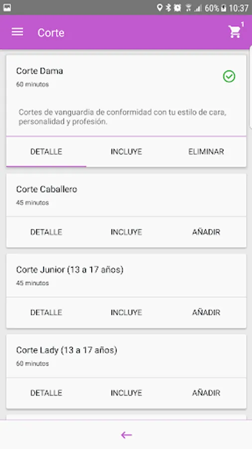 -selects and add to your cart any service category, this action can be repeated with another service of any other category.
