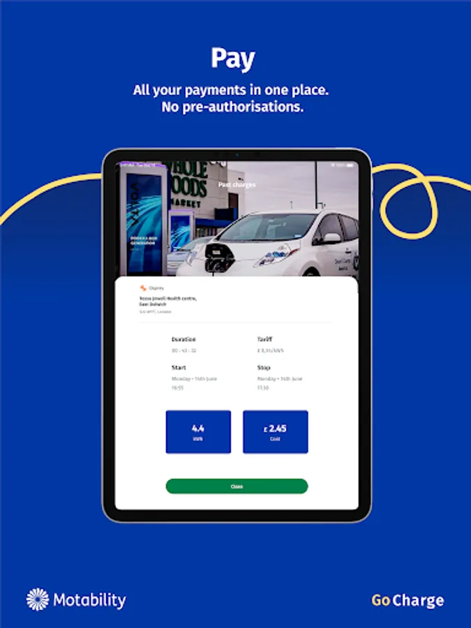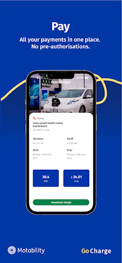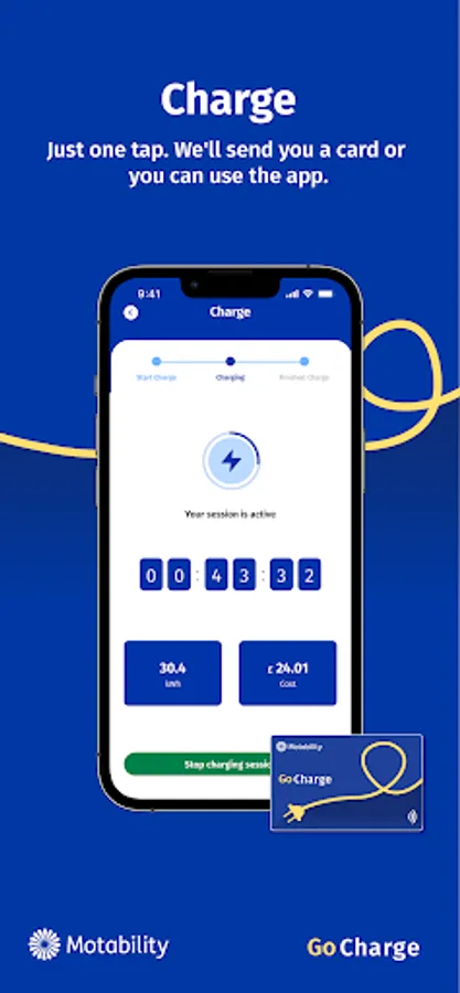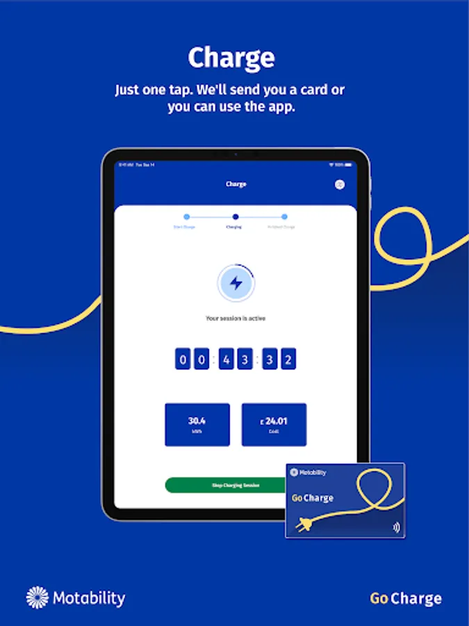 If you have an electric vehicle on the Scheme you can use Motability Go Charge to find chargepoints, manage your charging, and pay with one tap and one app.