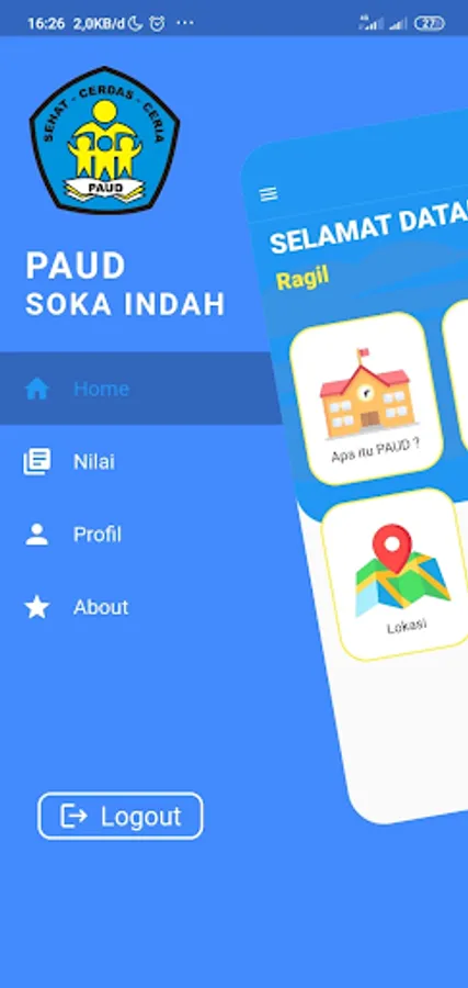 This application can make it easier for parents to get reports on the development of their child at Paud Soka Indah every week through their smartphone