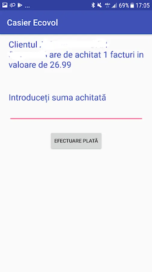 Together with a Bluetooth printer Datecs DPP-250, this application is used to access invoices, pay them, and then print receipts for customers Ecovol Company S.A.