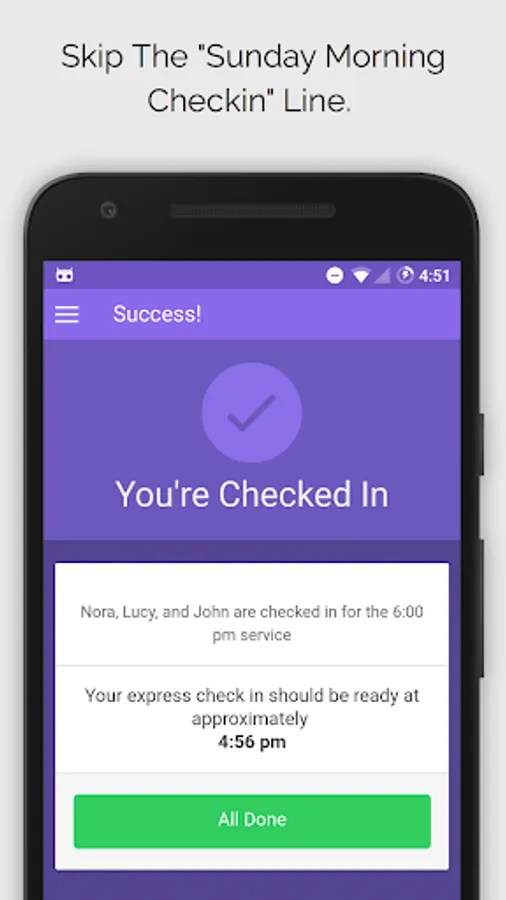 We want to make your Sunday mornings just a little bit better. Instead of waiting in line for 5 minutes, download the KidMin App and get an express pass in less than 10 seconds!