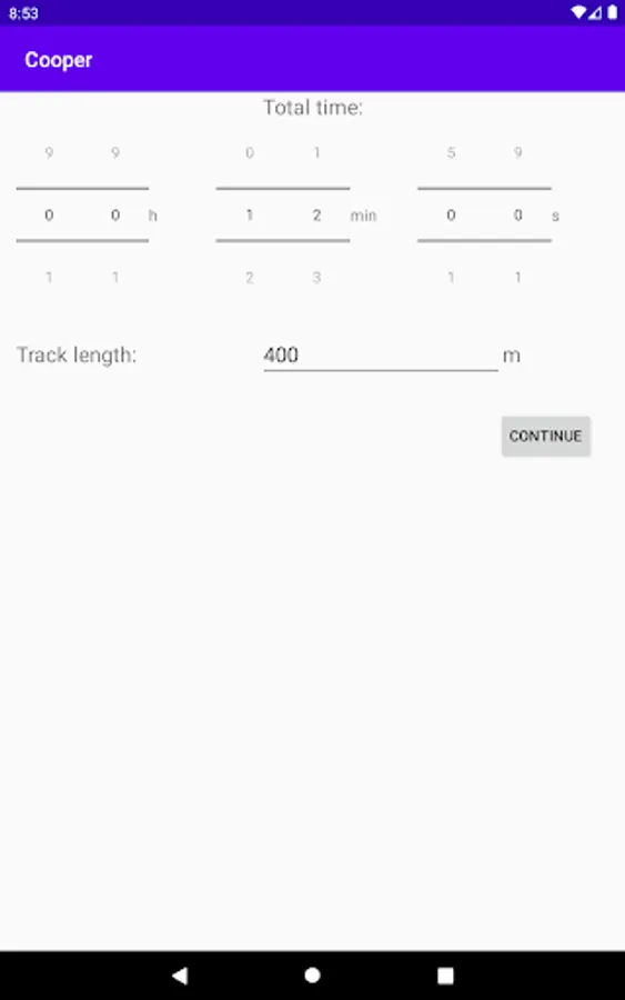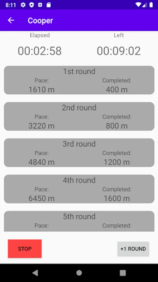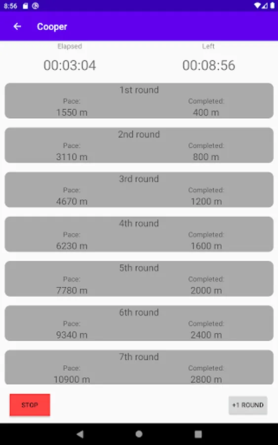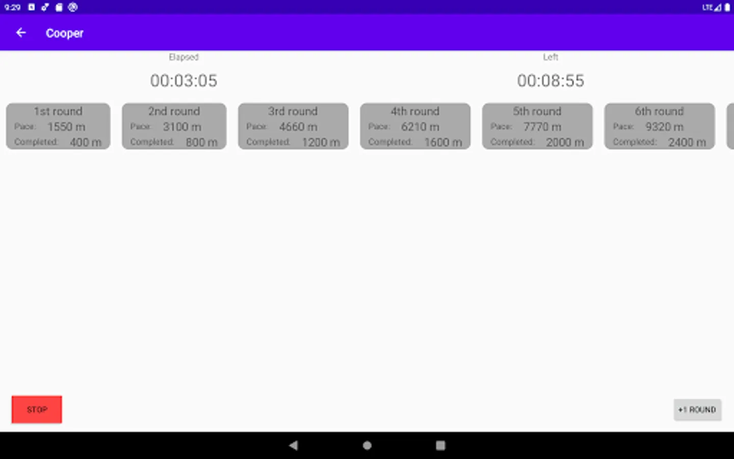 While performing a Cooper's test, it is crucial to achieve a steady running pace. With this app, the assistant can report each runner's pace depending on how many rounds they have completed.