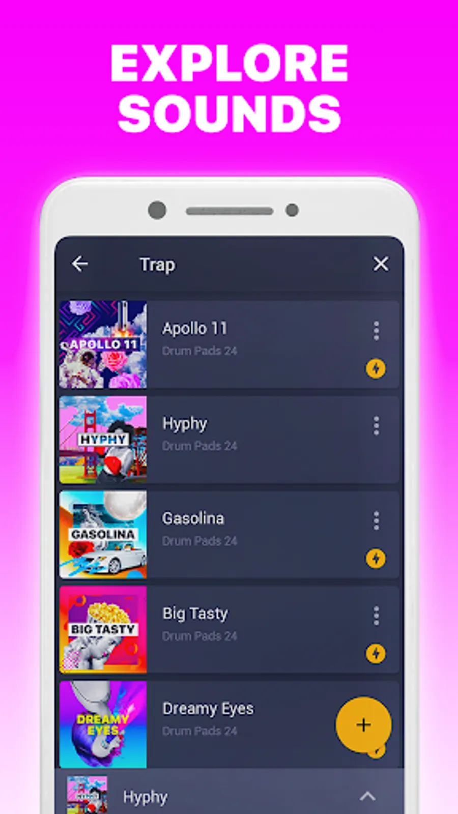 Do you like hiphop or rap? Use Drum Pads 24 as rapper soundboard app with ready-to-use and high-quality sounds.