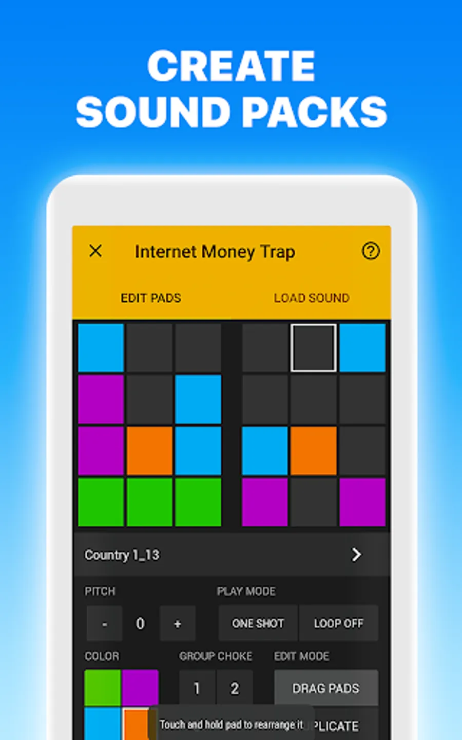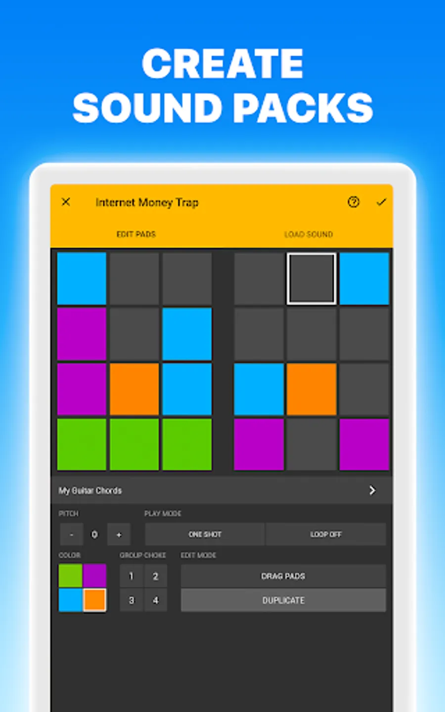 - Pad Editor to create your own sound pack with our samples or your favorite song.