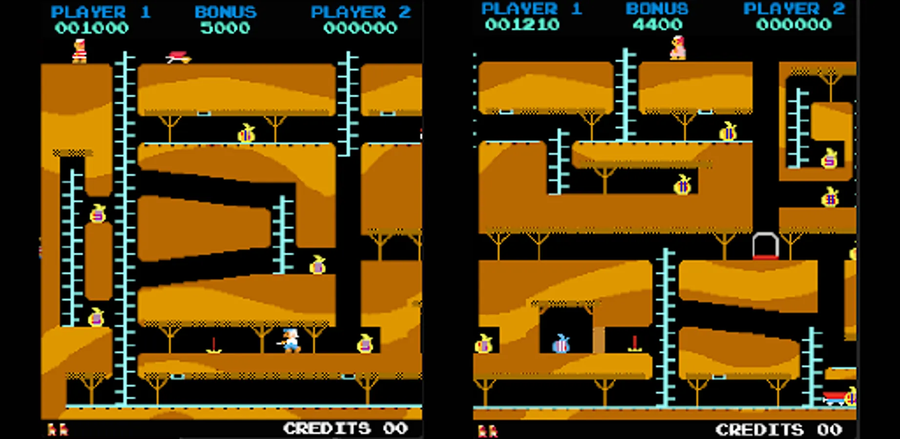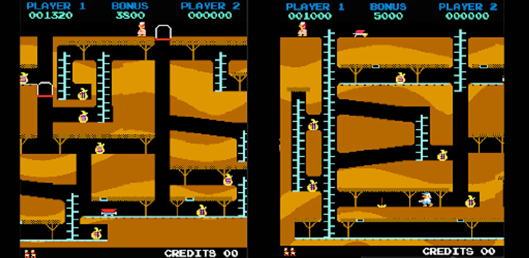 There are pickaxes you can use to stun the guards, but the main goal is to take money bags and bring them to the wheelbarrow on the surface before your bonus runs out.