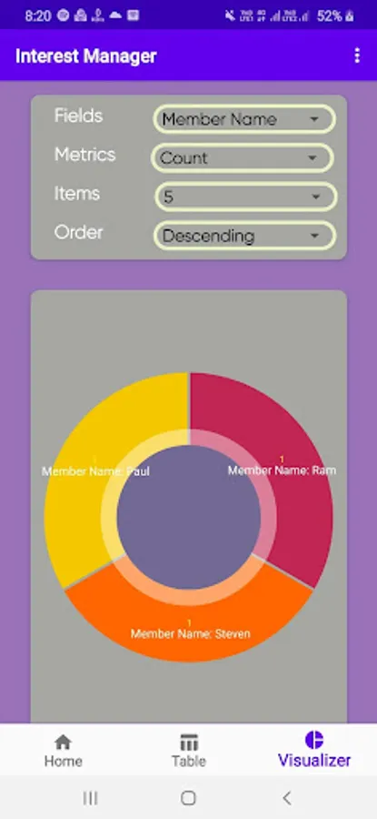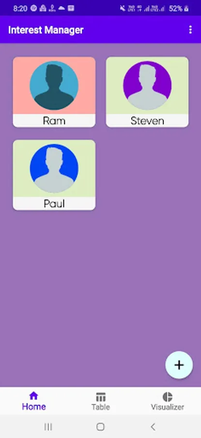 In the Home, You can store the person details of the amount you have lended. It comes with the status Option. So if the person finished and repayed your amount, You can mark it as Close and you can set it to open if he didn't payed your amount. Vibrant Red and Green Color Indicators to show the persons who repayed and not.
