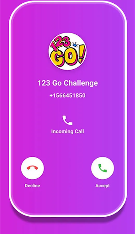 With 123 Go Challenge games Call you can get a fake call in anytime, and anywhere, just open the 123 Go Challenge app Fake Call app, and start to call or chat with 123 Go Challenge Call Fake, and also have a video call with 123 Go Challenge call , install it now and start having cool time with 123 Go Challenge real call .