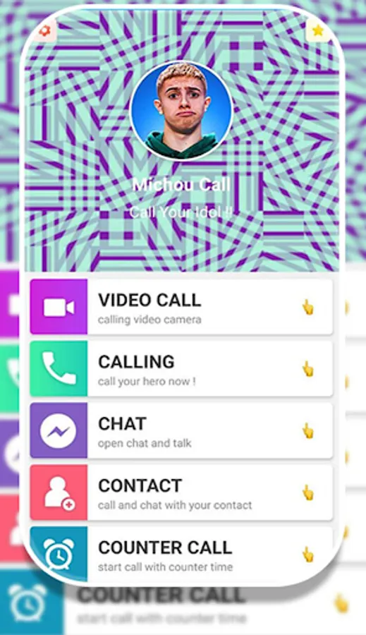 You need to call your idol Michou call, we are here today to give you this application that allows to you have a very funny time by being with Michou game in a fake call, are you ready to simulate a Michou video and fake call, yes you can prank your friend and tell them that you have an incoming call from Michou wallpaper , and have fun together, and they also can install this app and having a simulation of an incoming call from Michou app.