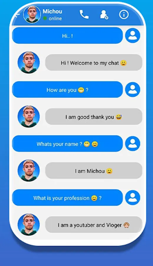 Michou video prank call , Today you can prank your friends and joke with them, Connect to Michou video call fake Call by clicking on the fake chat button and have fun with your friends.