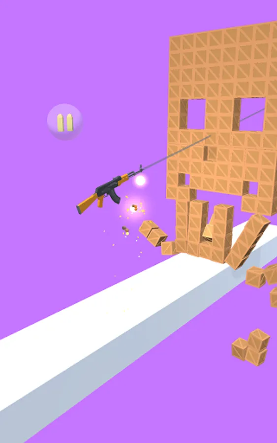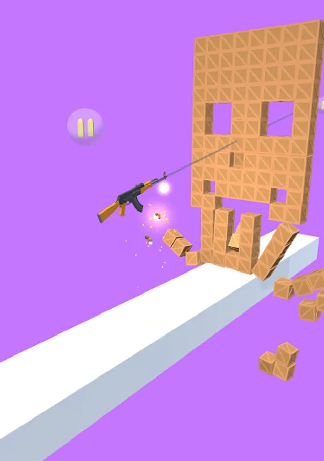 Touch to fire and lift the gun. Destroy everything ahead and get to the finish line! Collect bullets along the way.