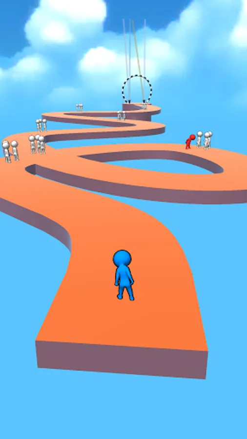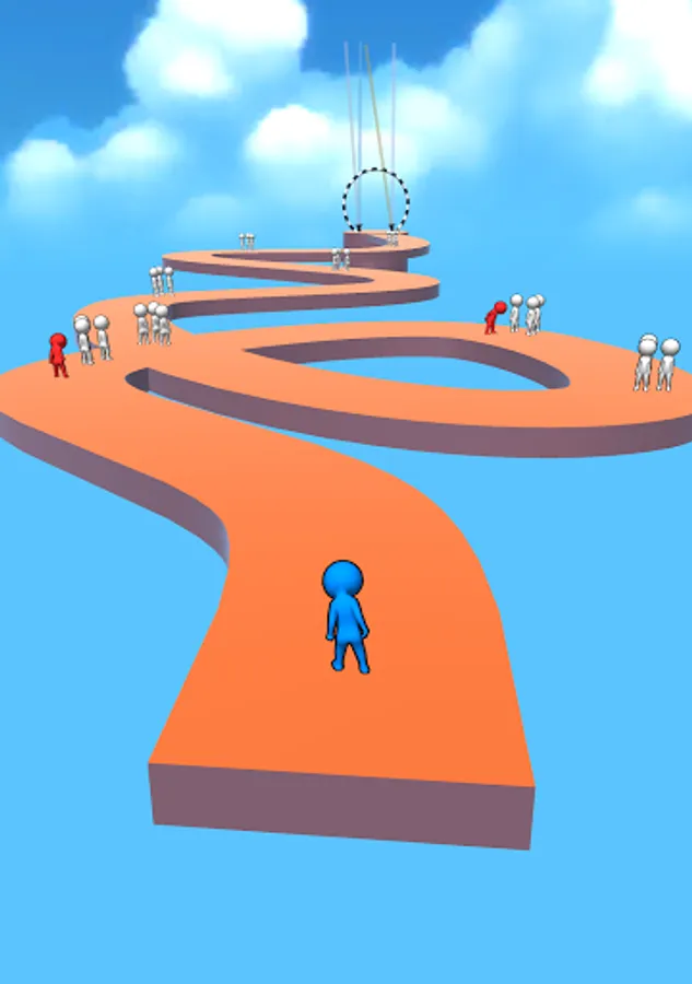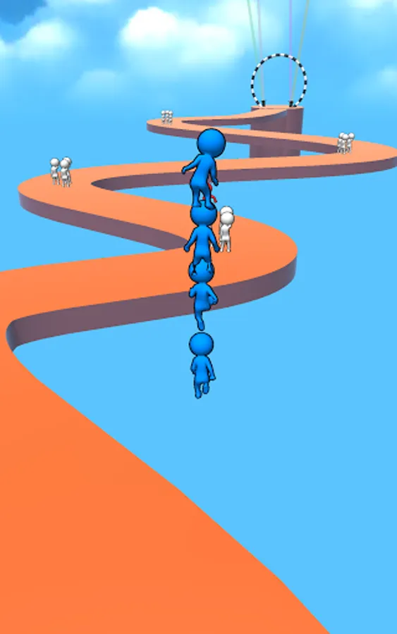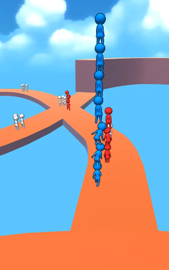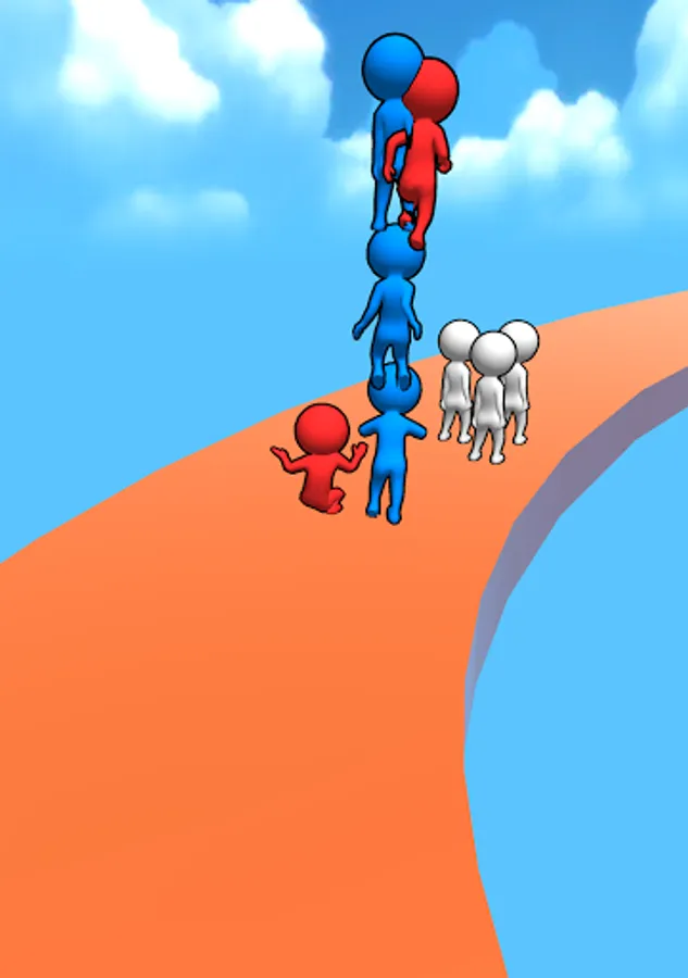 Stack the tallest tower of humans and jump through the sky to reach the finish line.