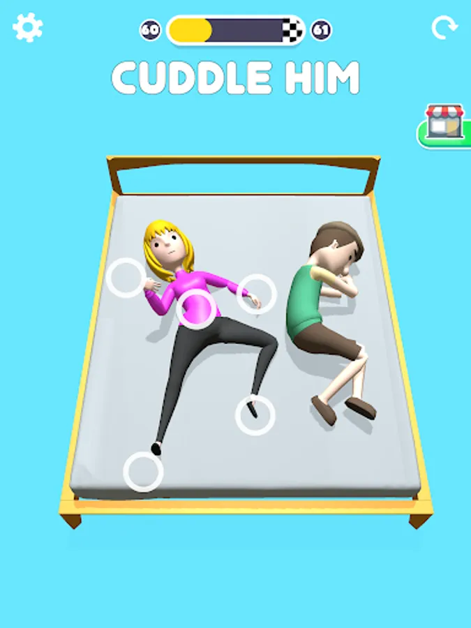 Put her and him in shape. Control puppets in variety of situations and help them achieve the desired state!