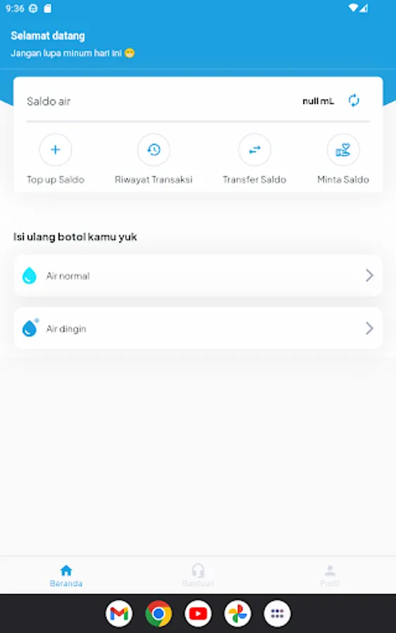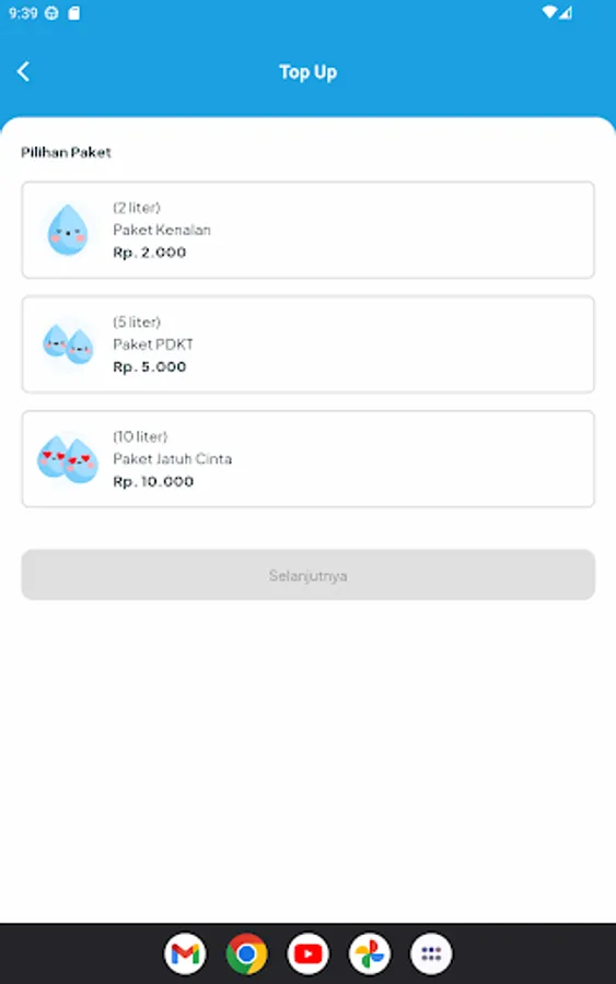 Paus Biru adalah aplikasi yang menyediakan layanan pembelian air minum dengan cara yang praktis dan mudah. Aplikasi ini menyediakan dispenser air minum di sekolah dan universitas. Kamu bisa beli saldo air kamu melalui melalui berbabagi metode yang kami siapkan. Seperti Gopay, Shopee Pay, OVO, dan juga QRIS