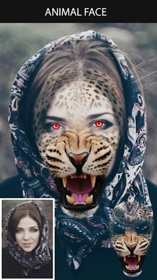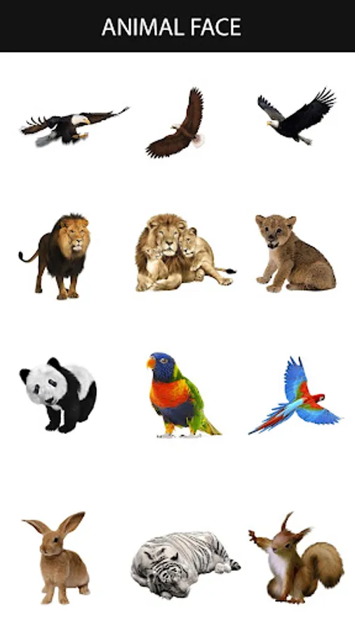 Join all the image editing fans in placing animal faces on pics and making funny face photo montages. Experience the best face changing and express your creativity using Animal Face Maker App. It will take you just a few seconds to switch face on your best selfies and place an angry lion, tiger or a cute bird face instead of your own and amaze everyone with your pic editing skills. Our newest Animal Face photo app for Android™ provide you with various cool stickers for photos which will help you make a one of a kind funny face changer you can share on all social networks. So, seize this amazing opportunity to obtain Animal Face photo maker and make the best use of our face swap special effects.