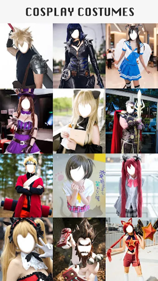 - Amazing amine cosplay costumes for easy photo montage. Create cute anime photo in cosplay costume in few seconds, Try the best cosplay suits.
