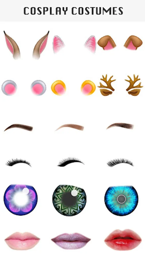 Cosplay Dress Up has most advanced tools to add anime cosplay stickers and cosplay suits to your face on photo and turn it into awesome Anime face with Cosplay Makeup. Add Cosplay Hair, eyes, hair style, mouth, ears, glasses, gun on photo and other cosplay stickers to your selfie photo for FREE!