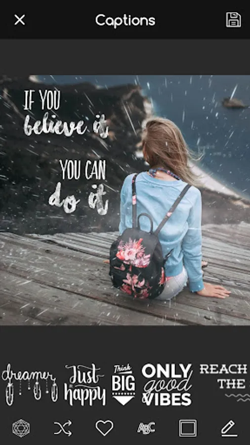 Add text on photo and custom typography using a wide variety of fonts and colors.
