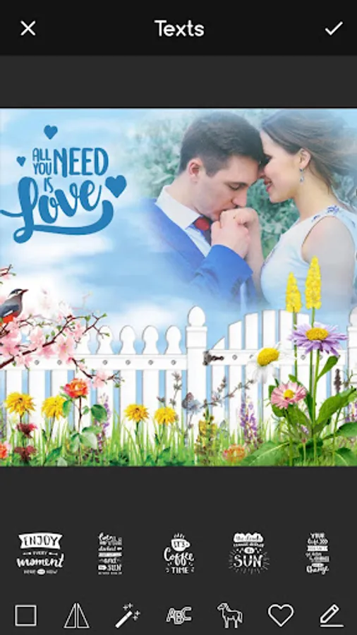 - Users can add Quote Garden, text in any size, font, scale and rotating the text.