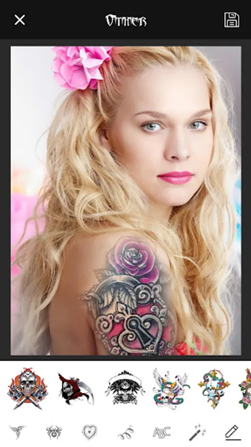 - Drag and position the 3D Tattoo effects image anywhere on the image, increase/decrease its size and place wherever you like.