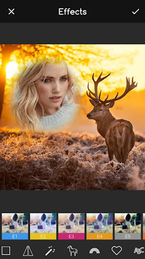 - Tap and apply different effects to your composition: Black and White, sepia, grayscale, rotate, zoom and more.