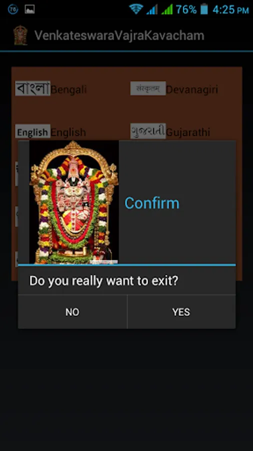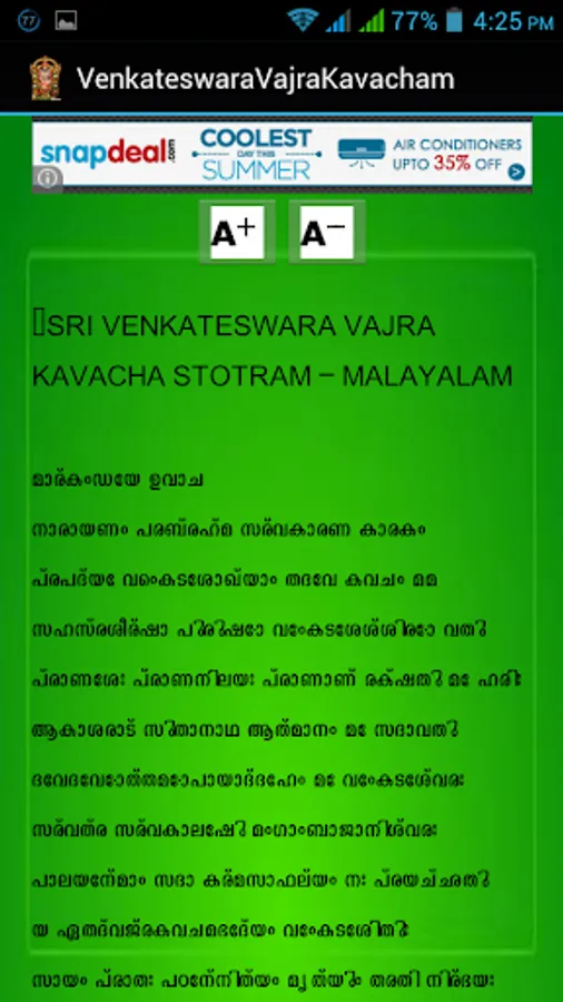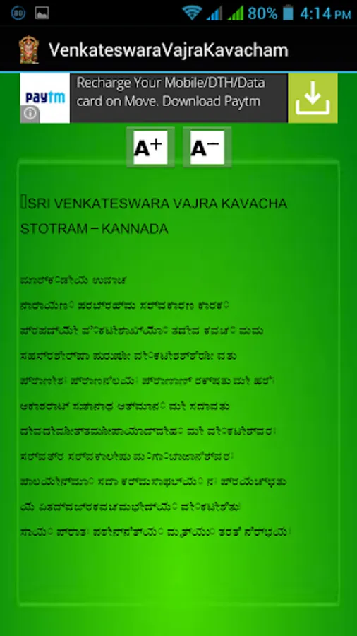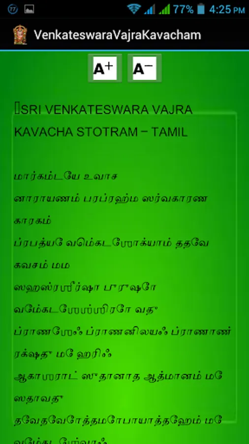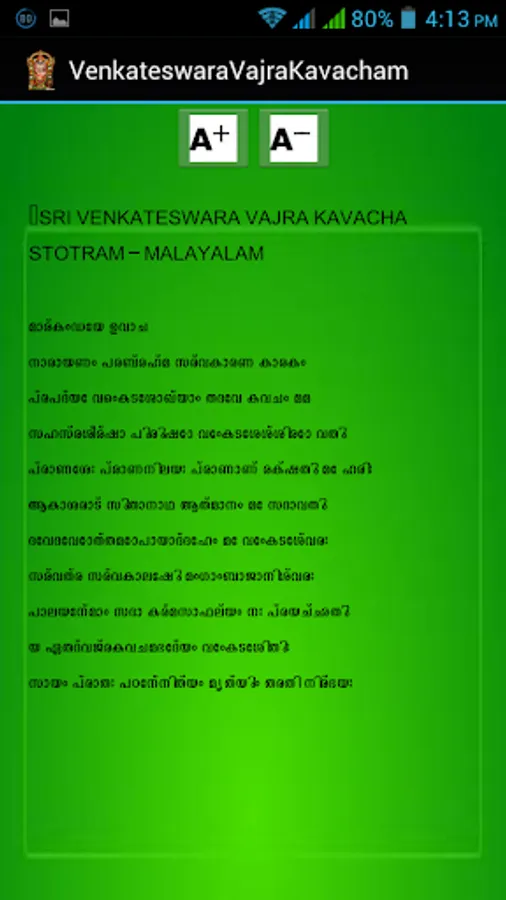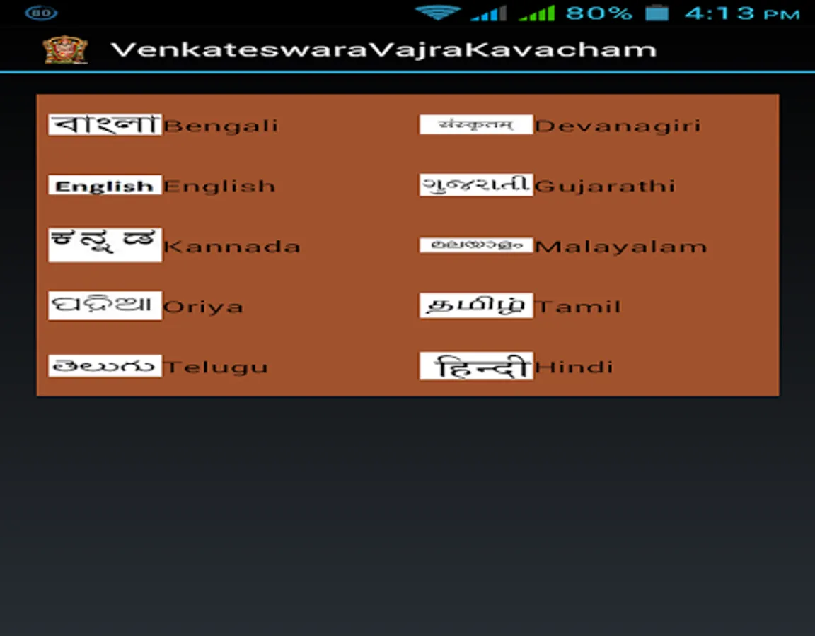 This is a storam which protects us and kavacha , so it named like that. In this application in Telugu, Hindi, English, Kannada, Malayalam, Gujarati, Tamil, Bengal, Oriya and in Devanagiri languages the user ca n read