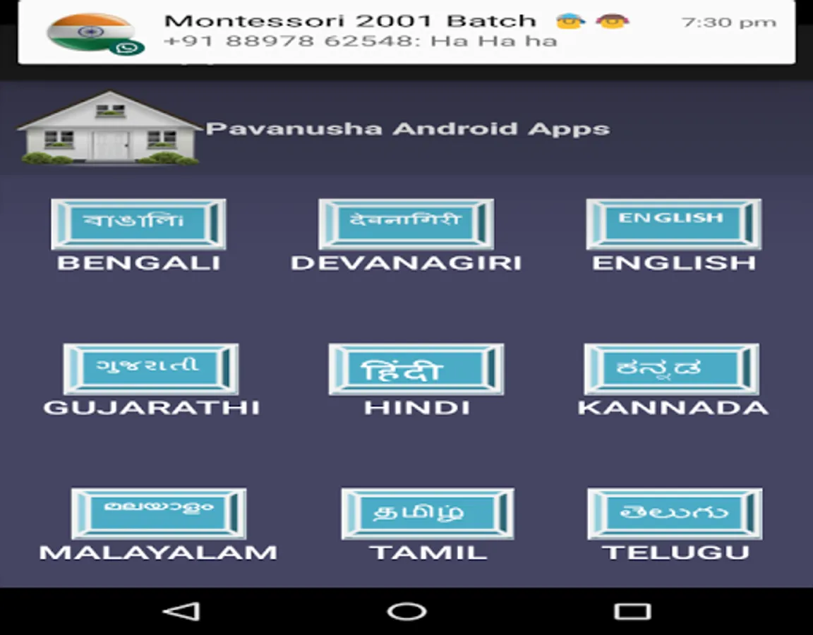 In this app we can learn Telugu, Tamil, Kannada, Malayalam, Bengali,Gujarati , Hindi and Devanagari languages