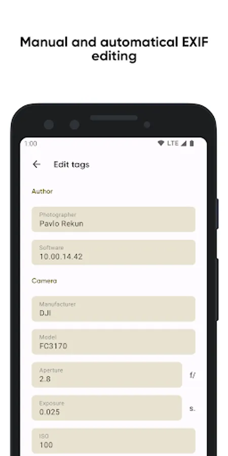 Graphie allows you to easily change the most popular EXIF tags of any images manually (entering data for changes each time) or using pre-collected parameters. Easily clear all tags with the click of a button.