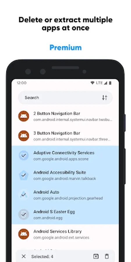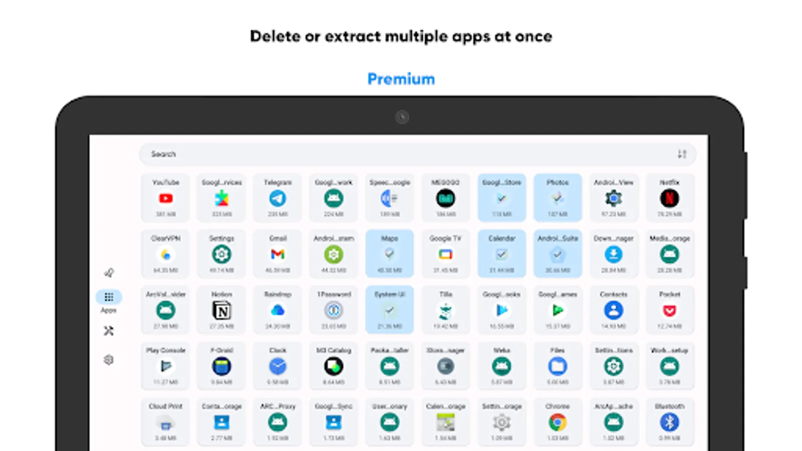• Deletion and extraction of multiple apps;