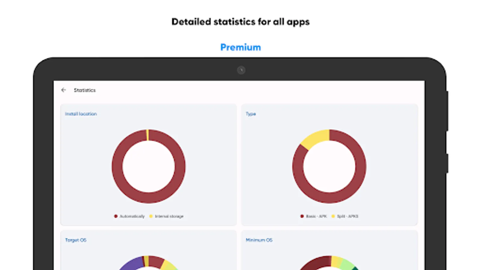 • Detailed statistics for all apps;