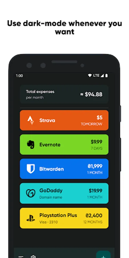 Tilla provides a clear overview of all your subscriptions and upcoming bills. You will always know the amount of money spent every month on the subscriptions anв never miss a payment date.
