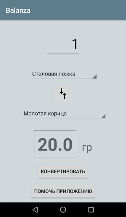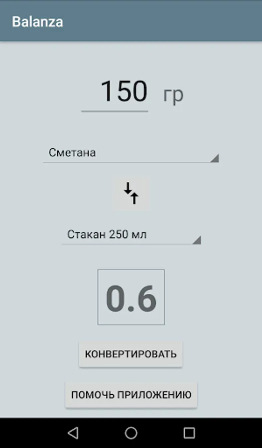 The application will help everyone who is engaged in cooking to translate grams into glasses, tablespoons and teaspoons and vice versa.